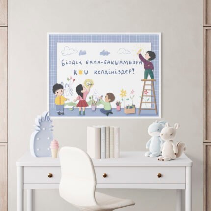 Стенд / панно / постер «Қош келдіңіздер» — это тёплое и дружелюбное приветствие, созданное специально для входной зоны детских пространств: детских садов, развивающих центров, студий и образовательных учреждений.
